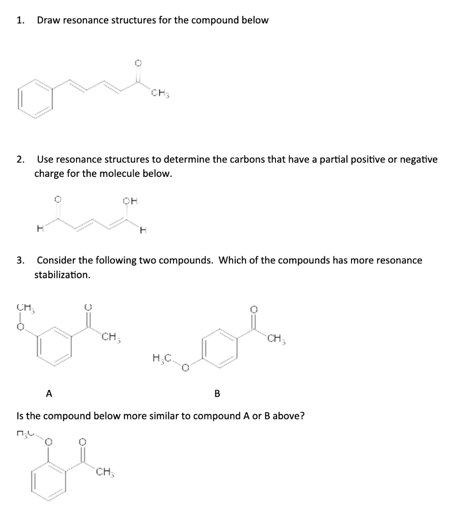 Solved 1 Draw Resonance Structures For The Compound Below Chegg Com